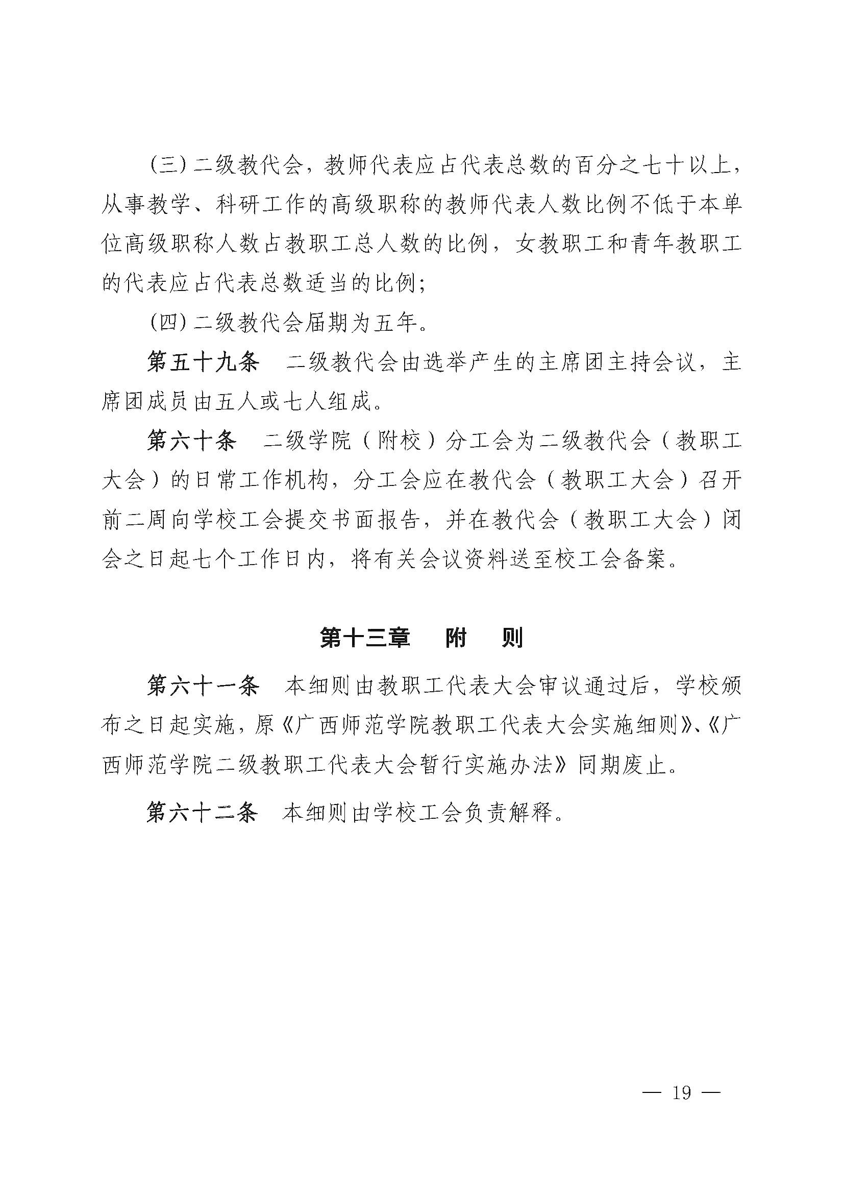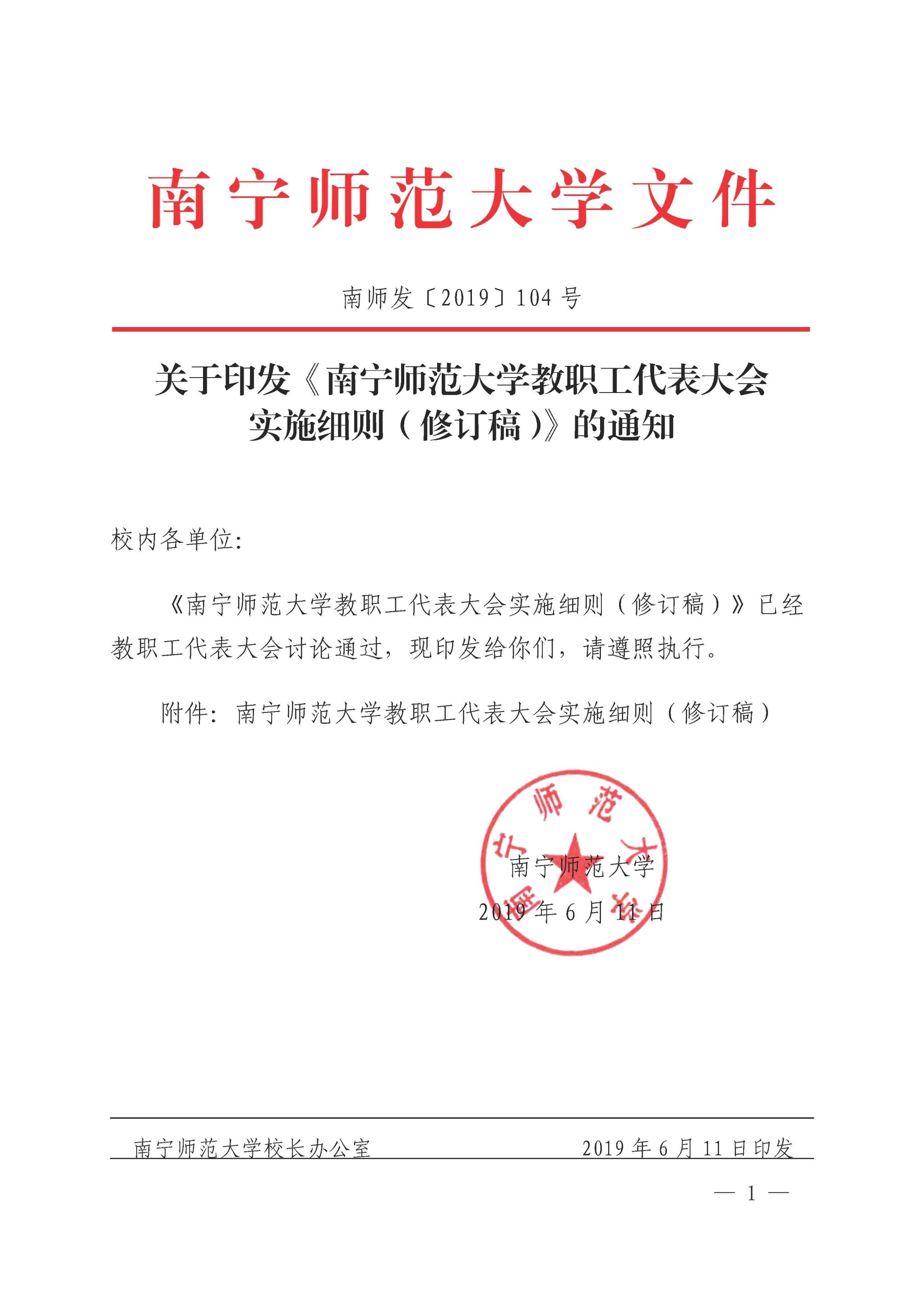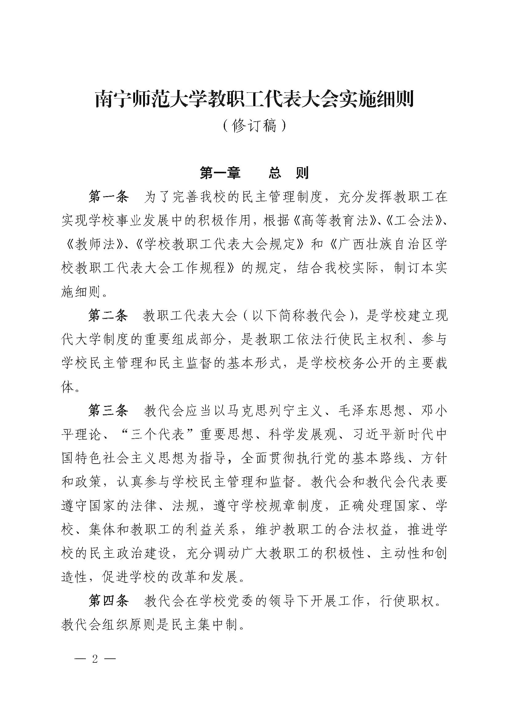 《南宁师范大学教职工代表大会实施细则(修订稿)》(南师发〔2019〕104号)